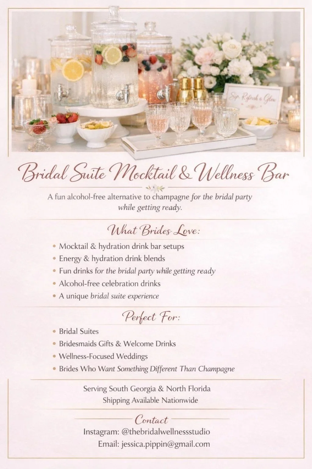 Specializing in Bridal Suite Mocktails & Wellness Bar
